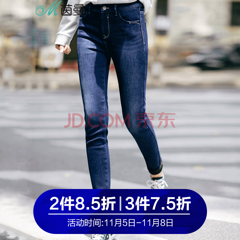 茵曼冬装内里加绒保暖显瘦洗水牛仔裤女