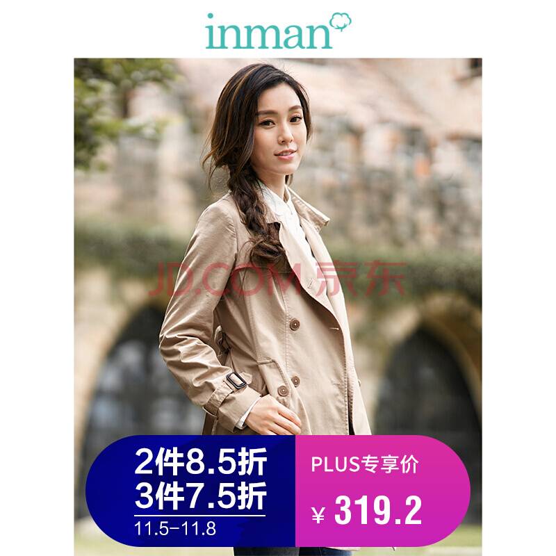 茵曼秋装秋冬净色纯棉翻领收腰百搭风衣外套女