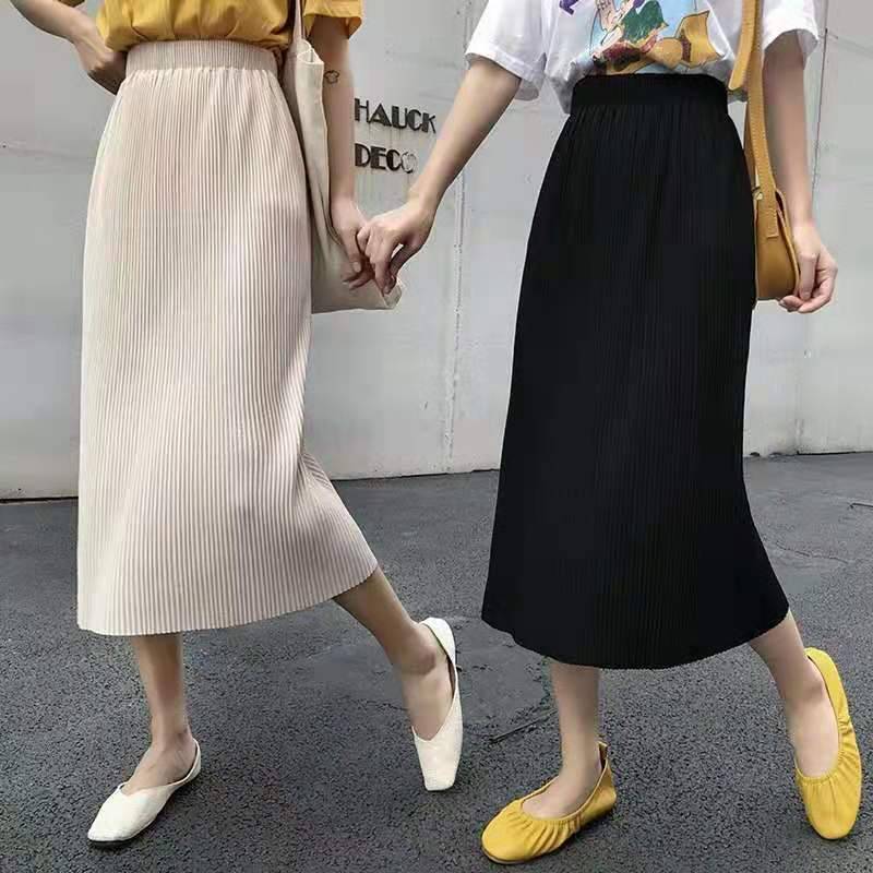 冰丝针织半身裙2019新款夏直筒百褶裙子