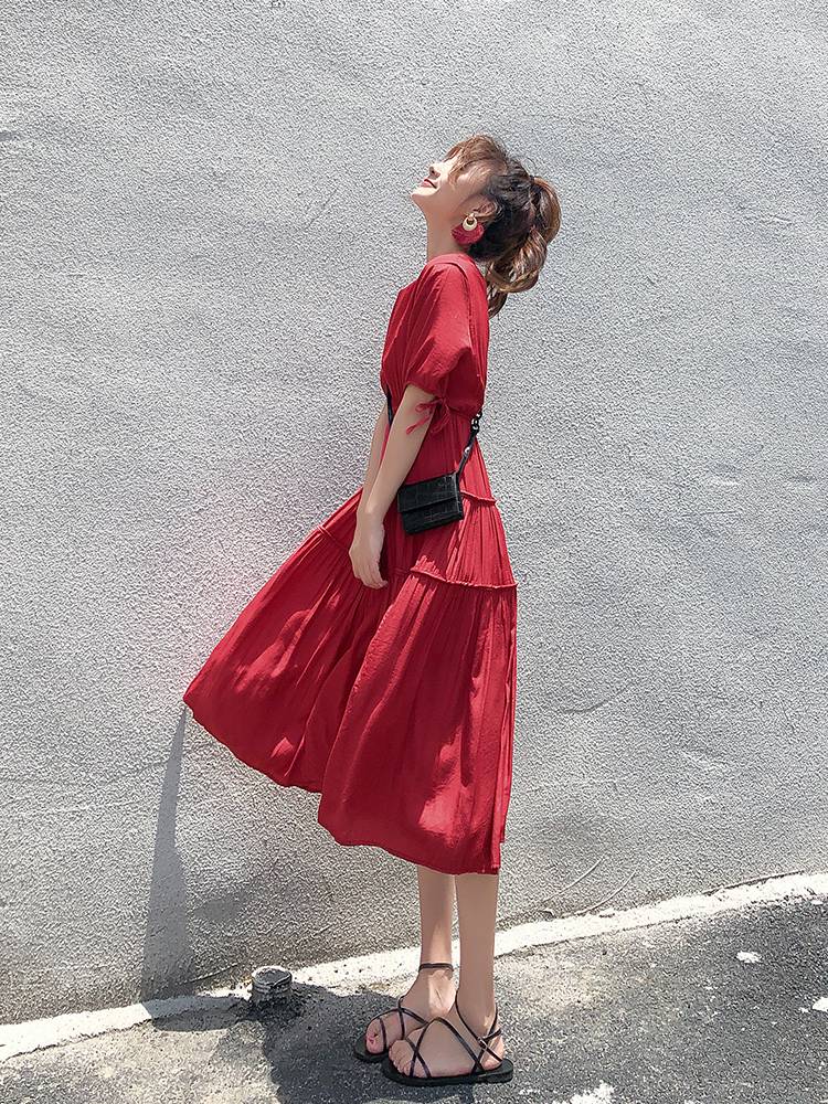 红色仙女连衣裙2019夏新款女中长款裙