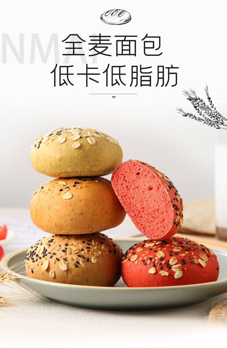 全麦欧包无油无糖低卡健身减肥人群健康代餐面包
