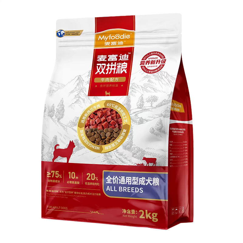 麦富迪狗粮牛肉双拼粮2kg通用型成犬贵宾泰迪比熊博美大小型犬粮