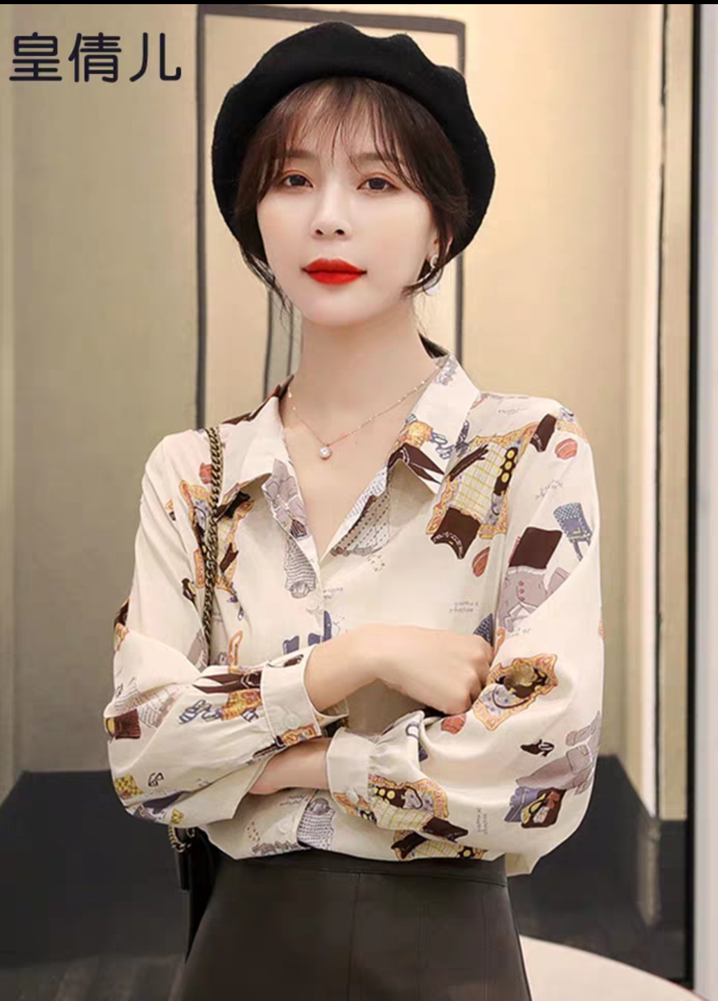 初秋新款灯笼袖上衣宫廷风长袖衬衫女翻领衬衣OL风2270