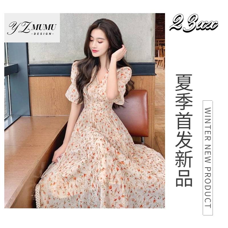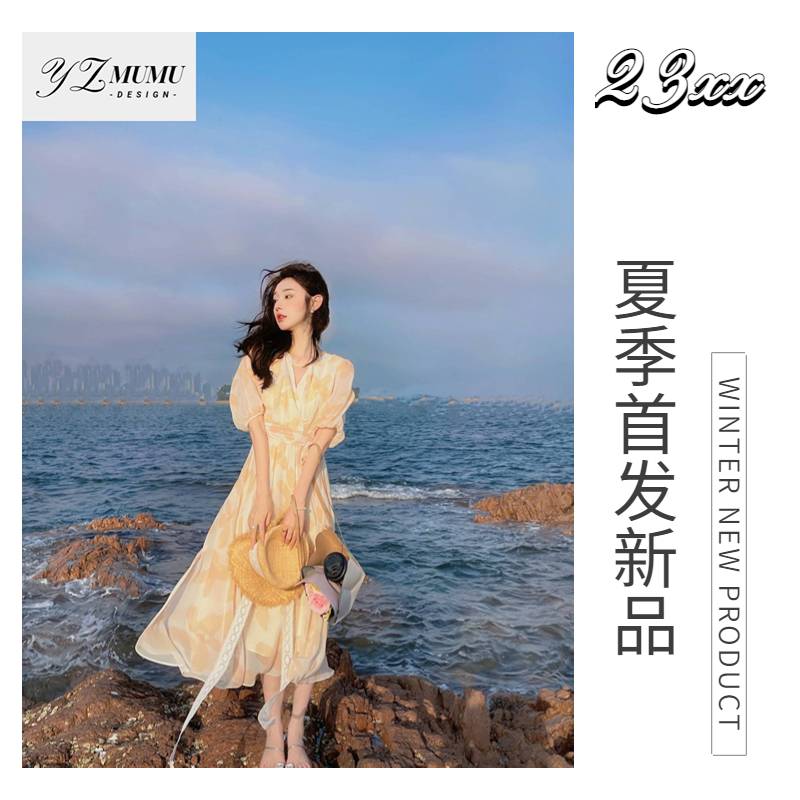 2023年样子木木夏季新款海边小碎花女款连衣长裙
