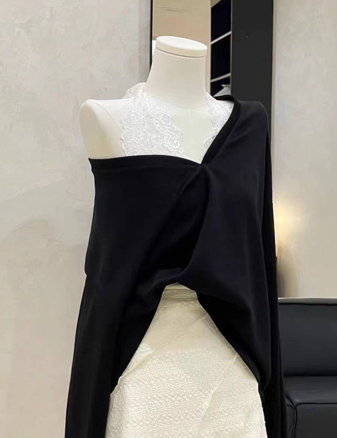 三两甜 辣妹大V领宽松显瘦长袖上衣女蕾丝吊带显瘦不规则半身裙子