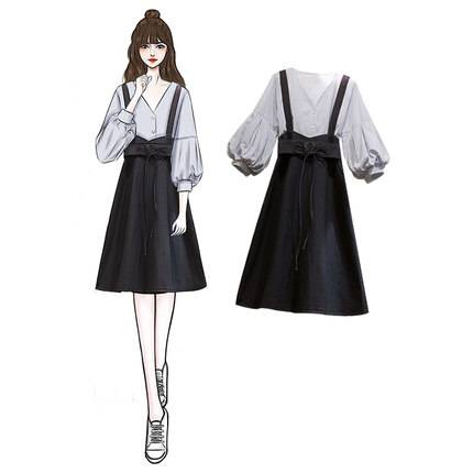 2019春夏装大码女装遮肚减龄套装胖妹妹显瘦背带牛仔连衣裙两件套