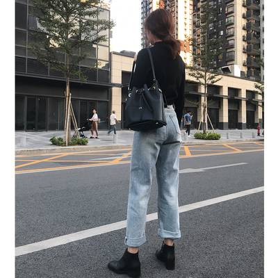 虎牙犬牙 牛仔裤女2019新款夏季ins怪味少女裤直筒宽松chic老爹裤