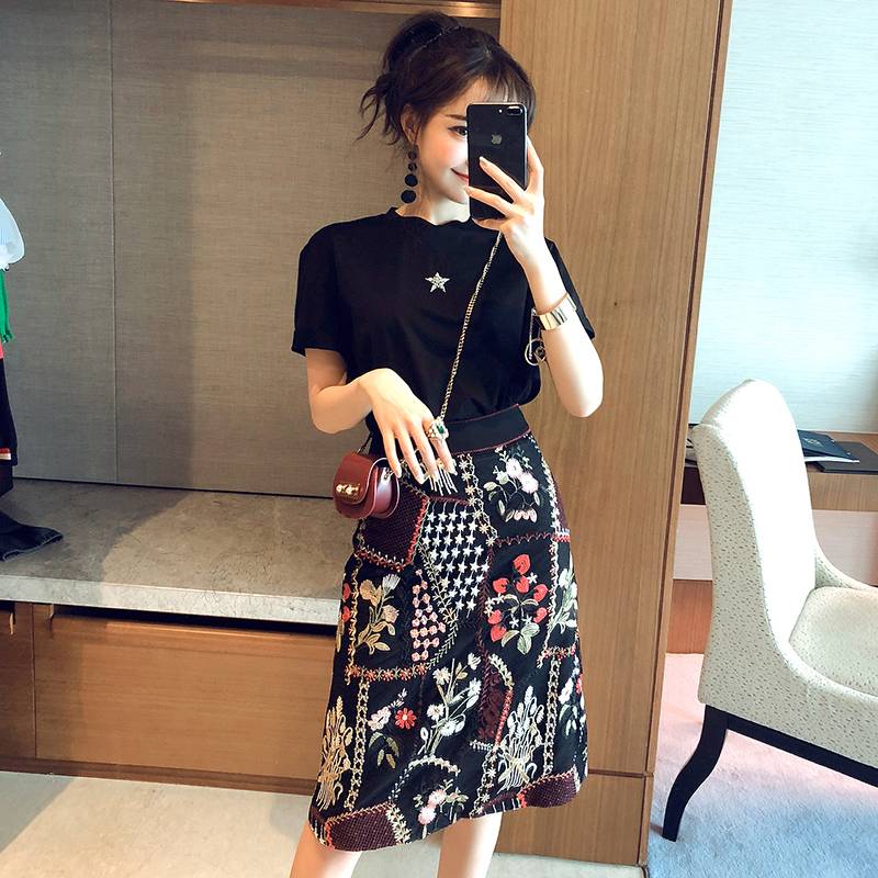 MIUCO名媛女装2019早春新款气质复古重工刺绣包臀高腰网纱半身裙