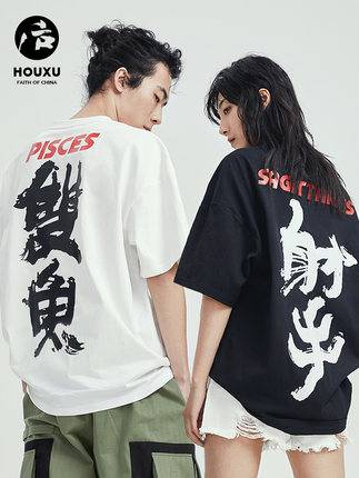 后序十二星座t恤男短袖宽松情侣装夏装潮牌五分袖国潮短袖男ins潮