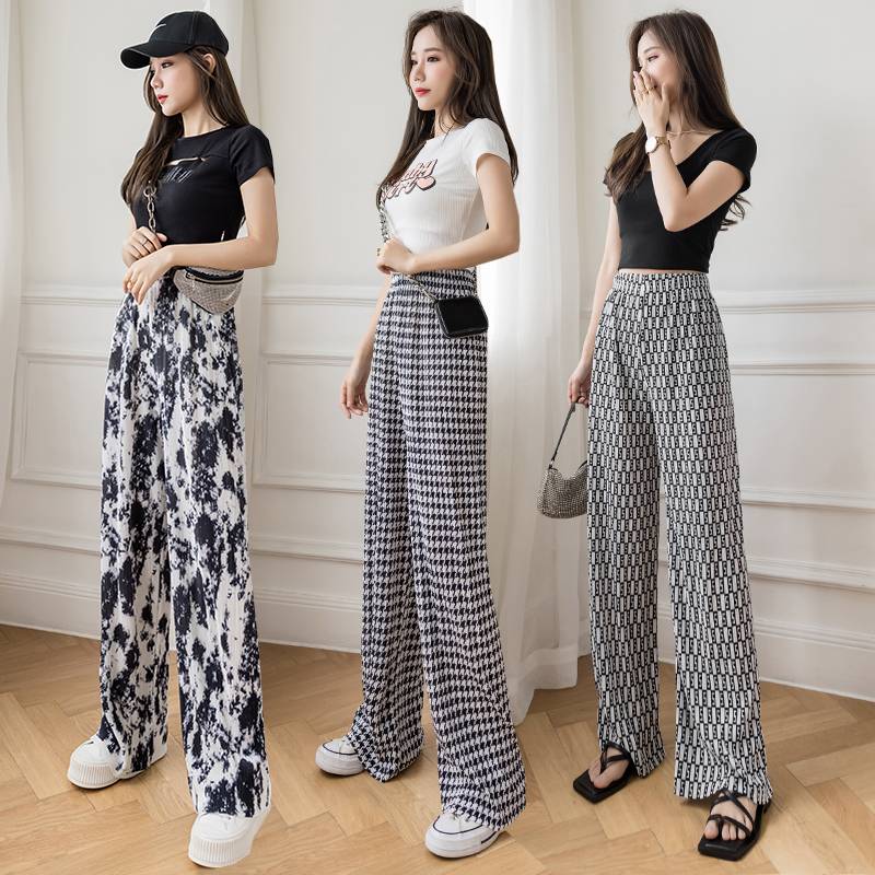 2020春夏新款批发松紧腰高腰牛仔裤女宽松直筒显瘦阔腿长裤