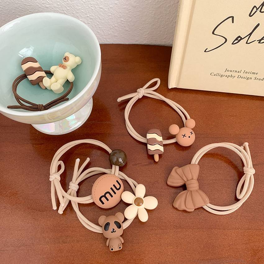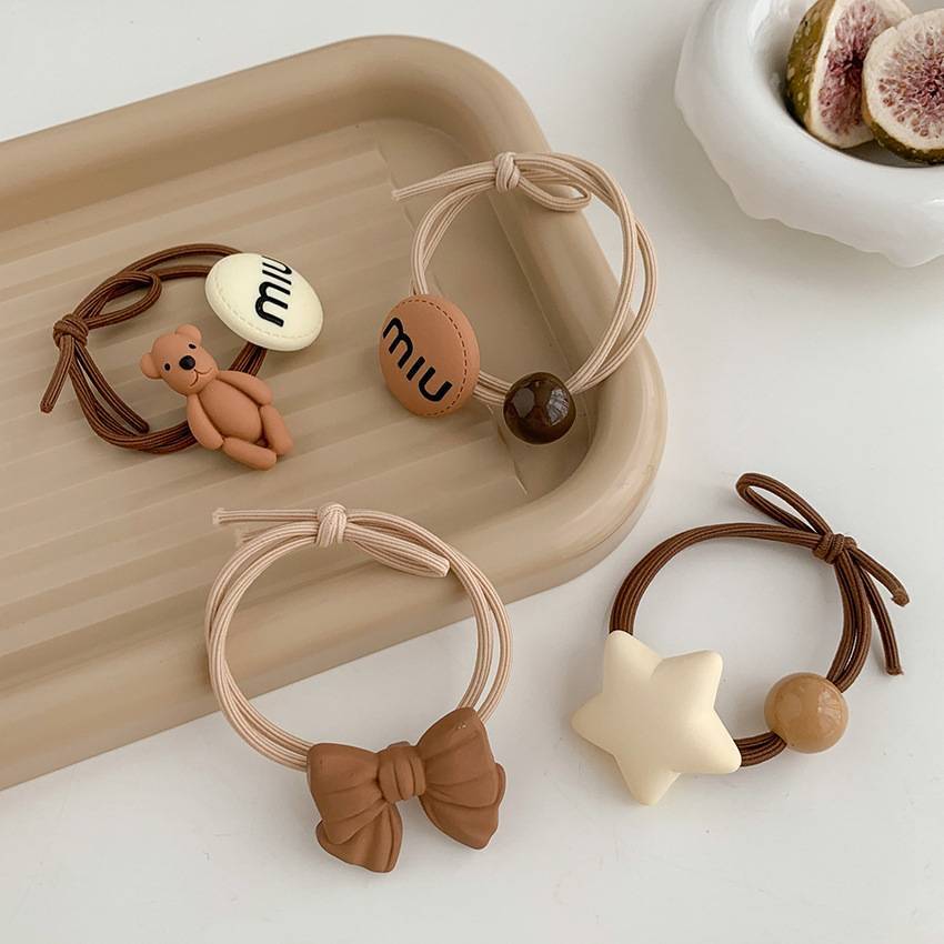 咖色系敲可爱小熊花朵打结发绳高弹力简约橡皮筋蝴蝶结头绳发圈