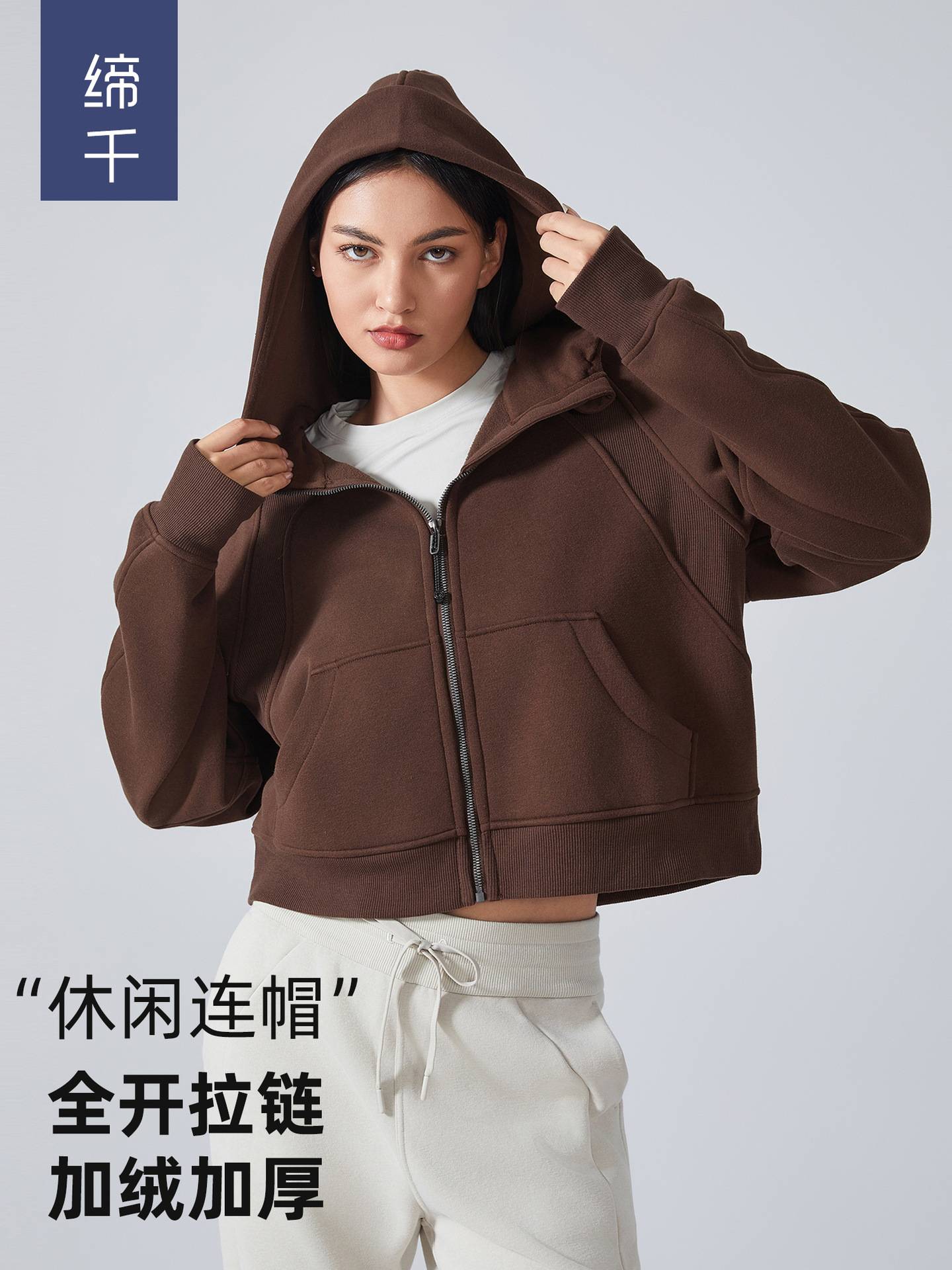 新款加绒拉链连帽运动外套女宽松休闲卫衣瑜伽服上衣秋冬DAW151