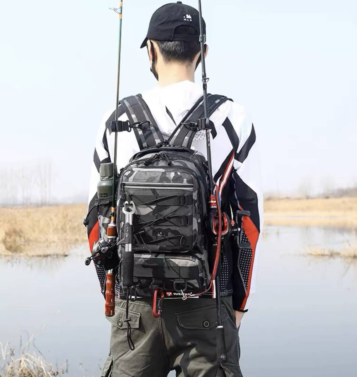 百搭路亚双肩腰包防水耐磨轻便小身材大容量双层多功能可插鱼竿包