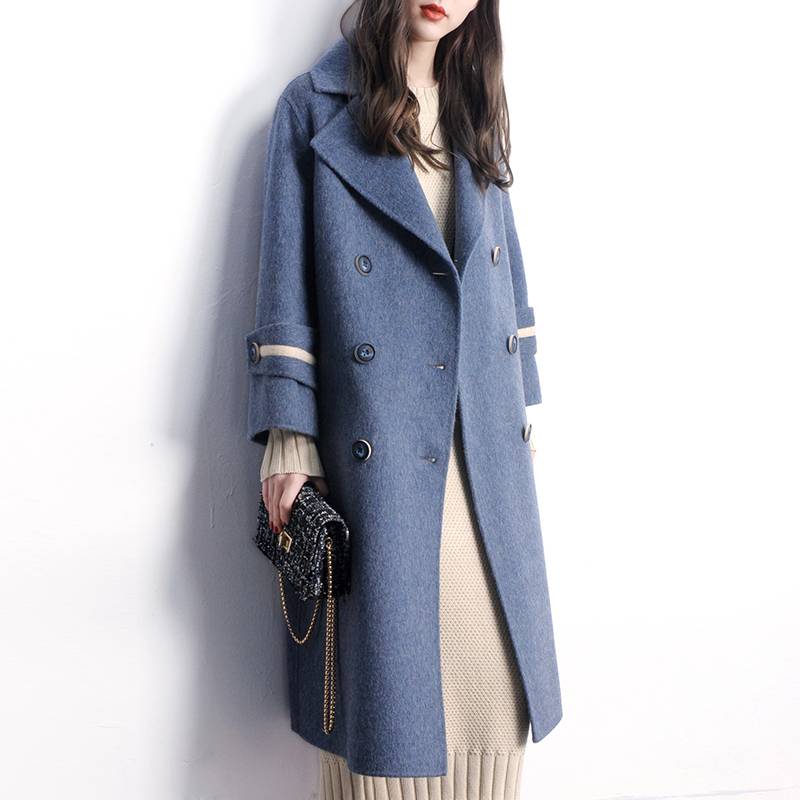 双面羊绒大衣阿尔巴卡羊驼雾霾蓝赫本风毛呢羊毛双面呢女