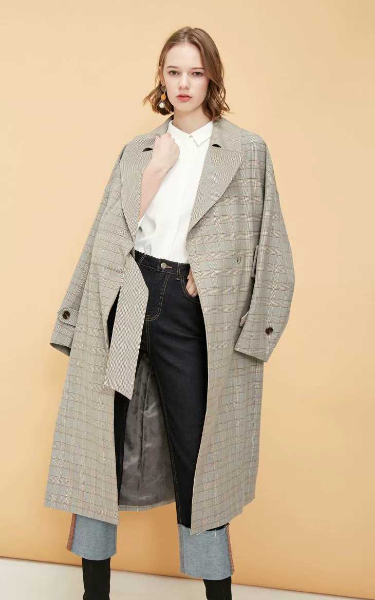 2019春季新款ins风翻领格纹披肩风衣外套女