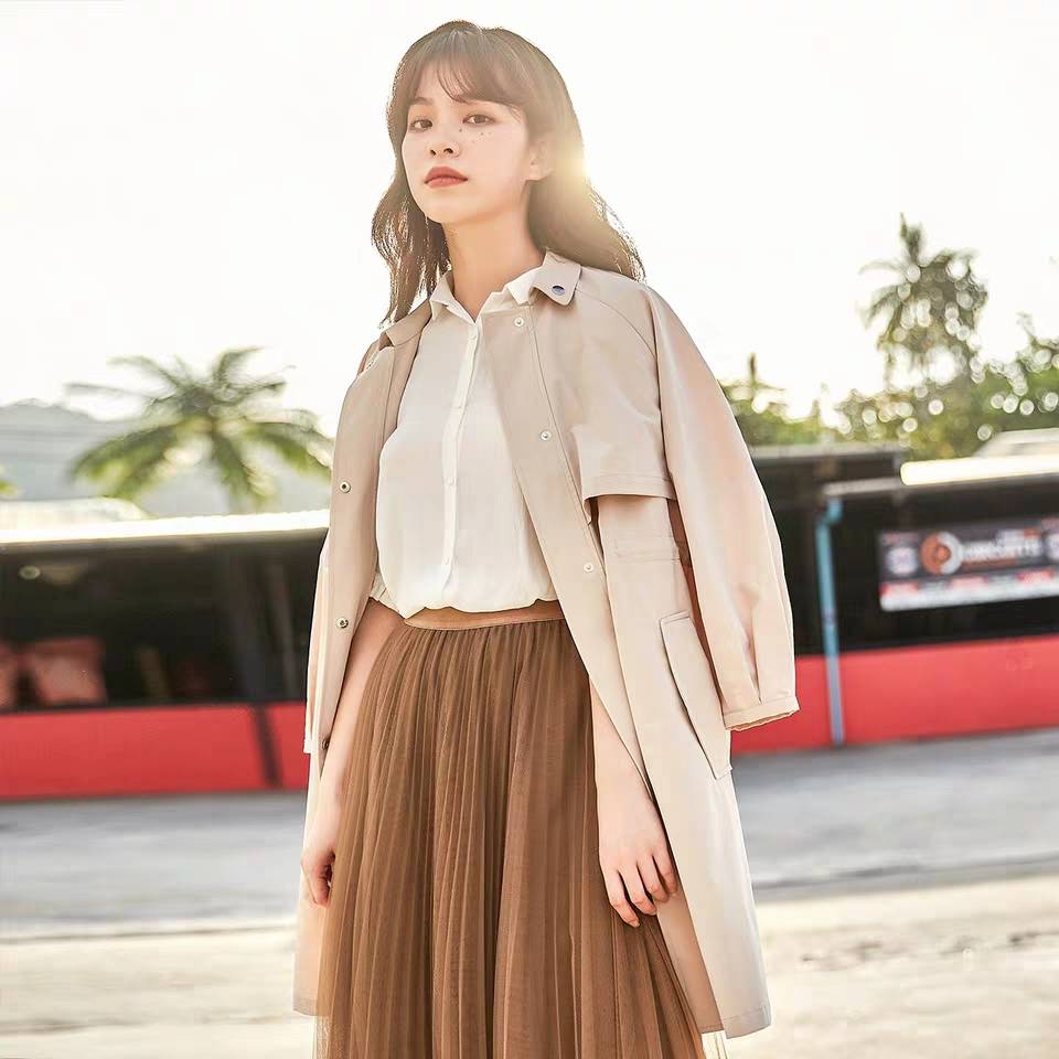 中长款流行风衣女2019春装新款韩版小个子春秋大衣学生工装外套潮