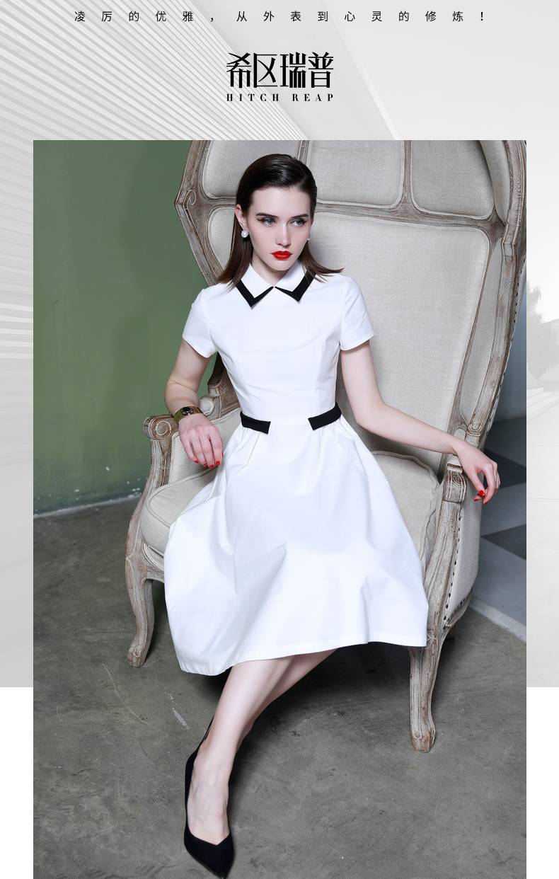项清polo领连衣裙2018夏新款欧美时尚知性黑白撞色赫本裙复古