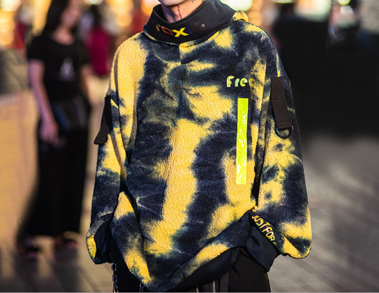 男装潮牌原创冬厚款大码高街立领 数码烫画连帽扎染卫衣男定制