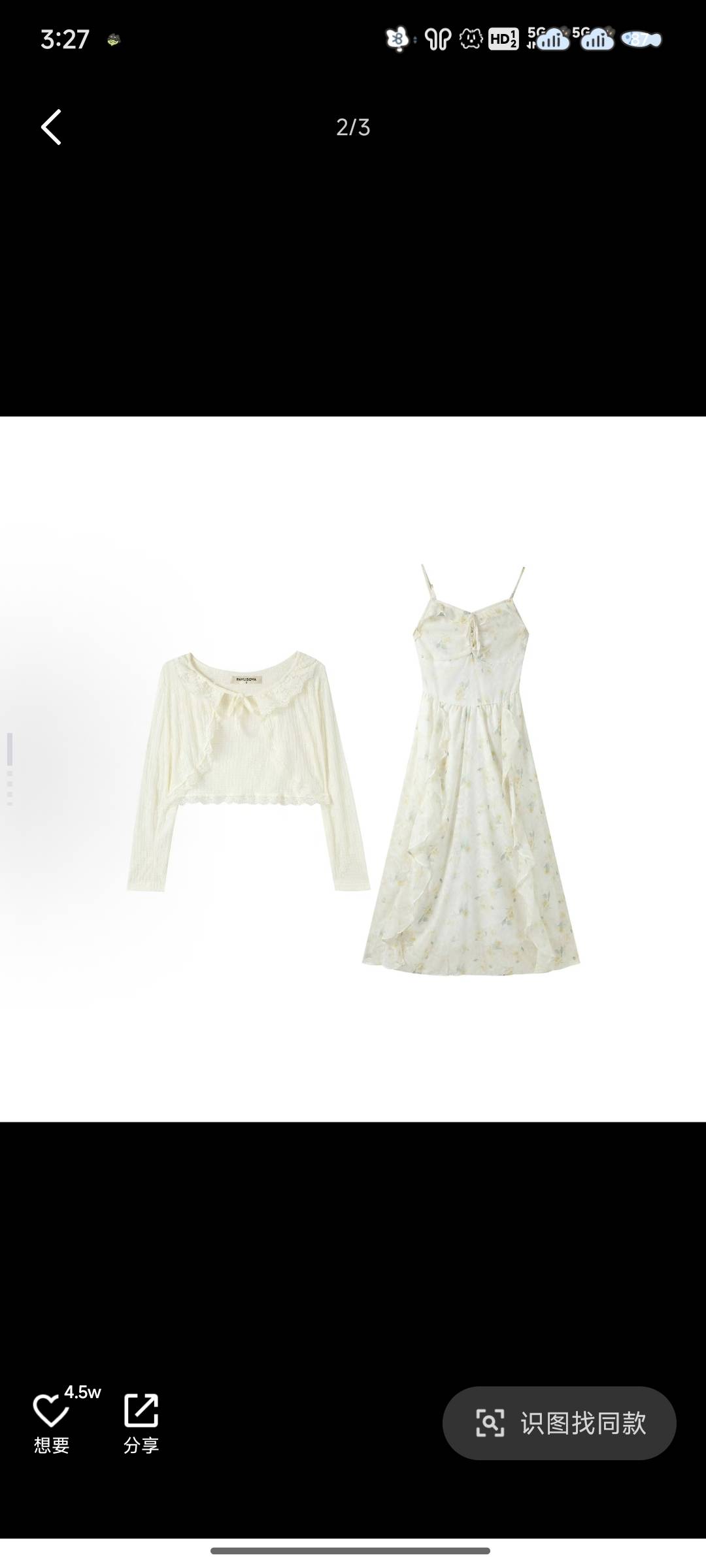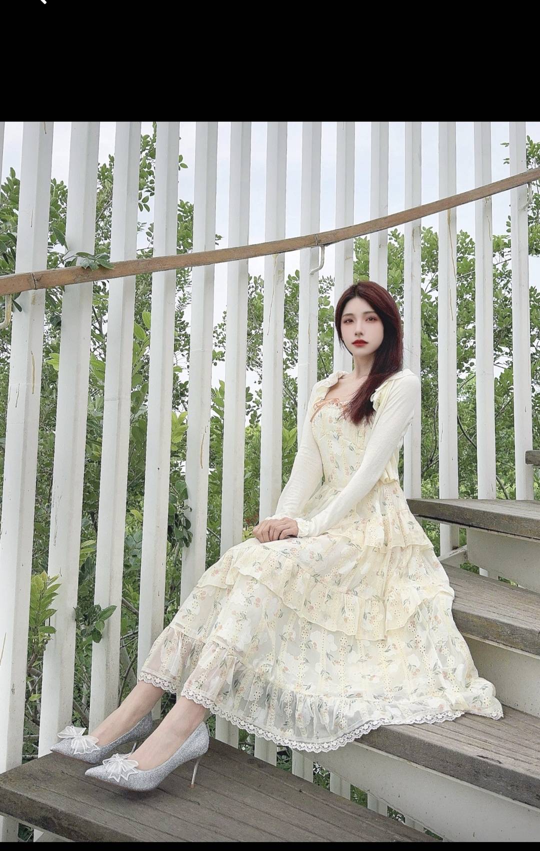 法式茶歇长袖防晒上衣高腰荷叶边设计感初恋法式方领碎花雪纺连衣裙裙装套装 女款