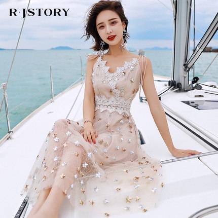 2019年夏季新款文艺小清新A字短袖中长款过膝连衣裙