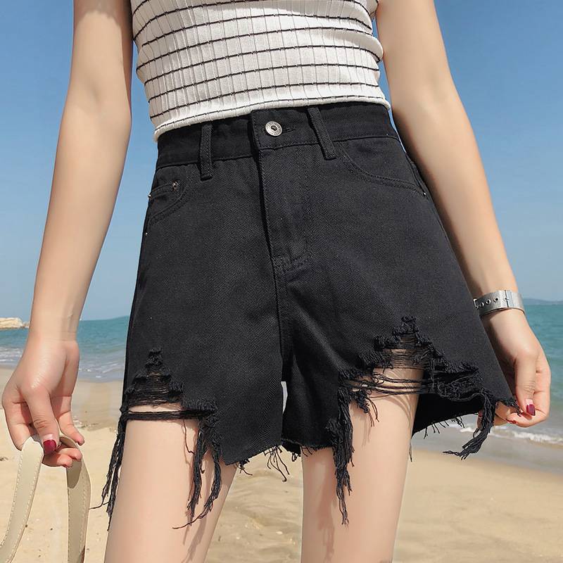 2019夏季新款泫雅风时尚A字毛边多色可选高腰牛仔超短裤子女显瘦