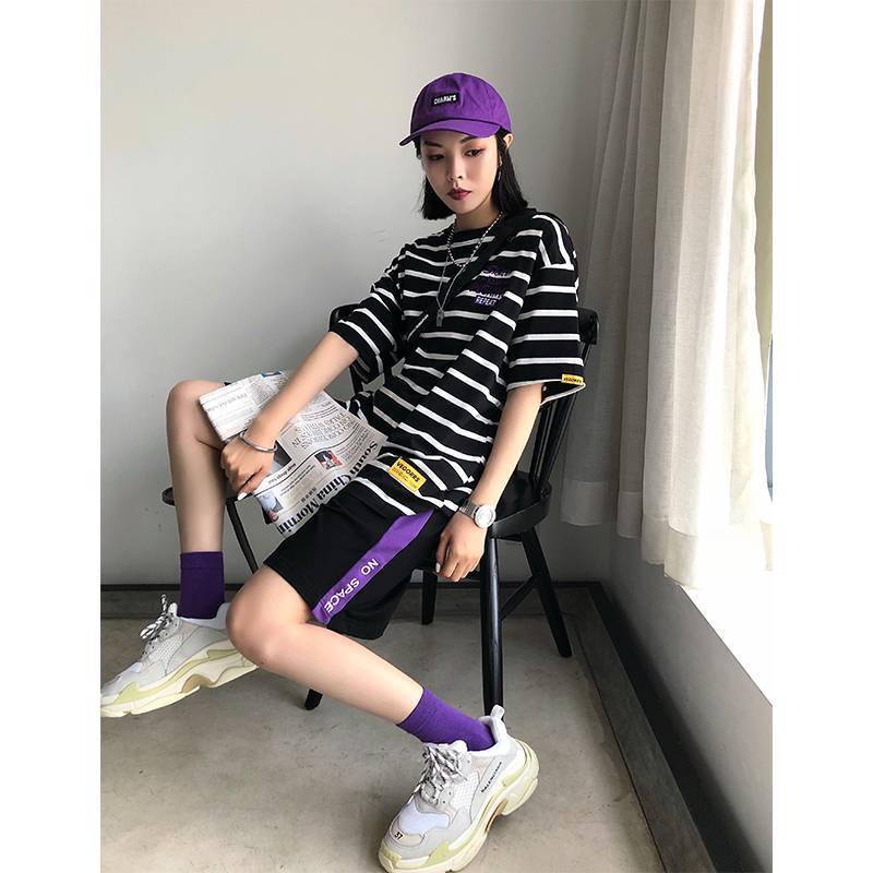 包邮2019年夏季新款条纹T恤短袖宽松女帅气可盐可甜好搭配