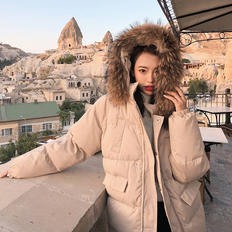包邮2019年秋冬新款时尚棉服中长款过膝带帽子加厚羽绒服