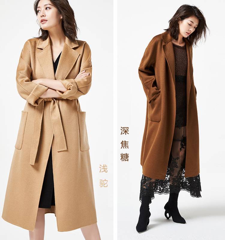 经典大衣双面羊绒大衣毛呢外套女水波纹羊绒大衣