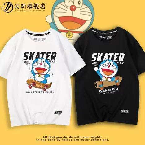 2022夏季新款哆啦A梦短袖T恤男女日系叮当猫设计感潮流宽松情侣装