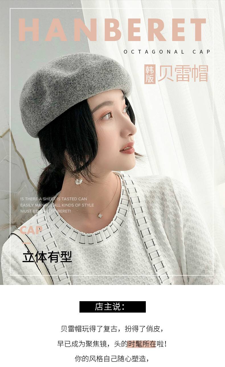 少女之家羊毛女士贝雷帽可爱小清新帽子时尚休闲百搭八角帽chic帽