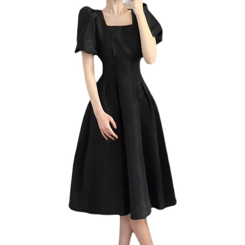 欧货时尚洋气娃娃领连衣裙女2021年夏季新款 气质收腰泡泡袖a字裙