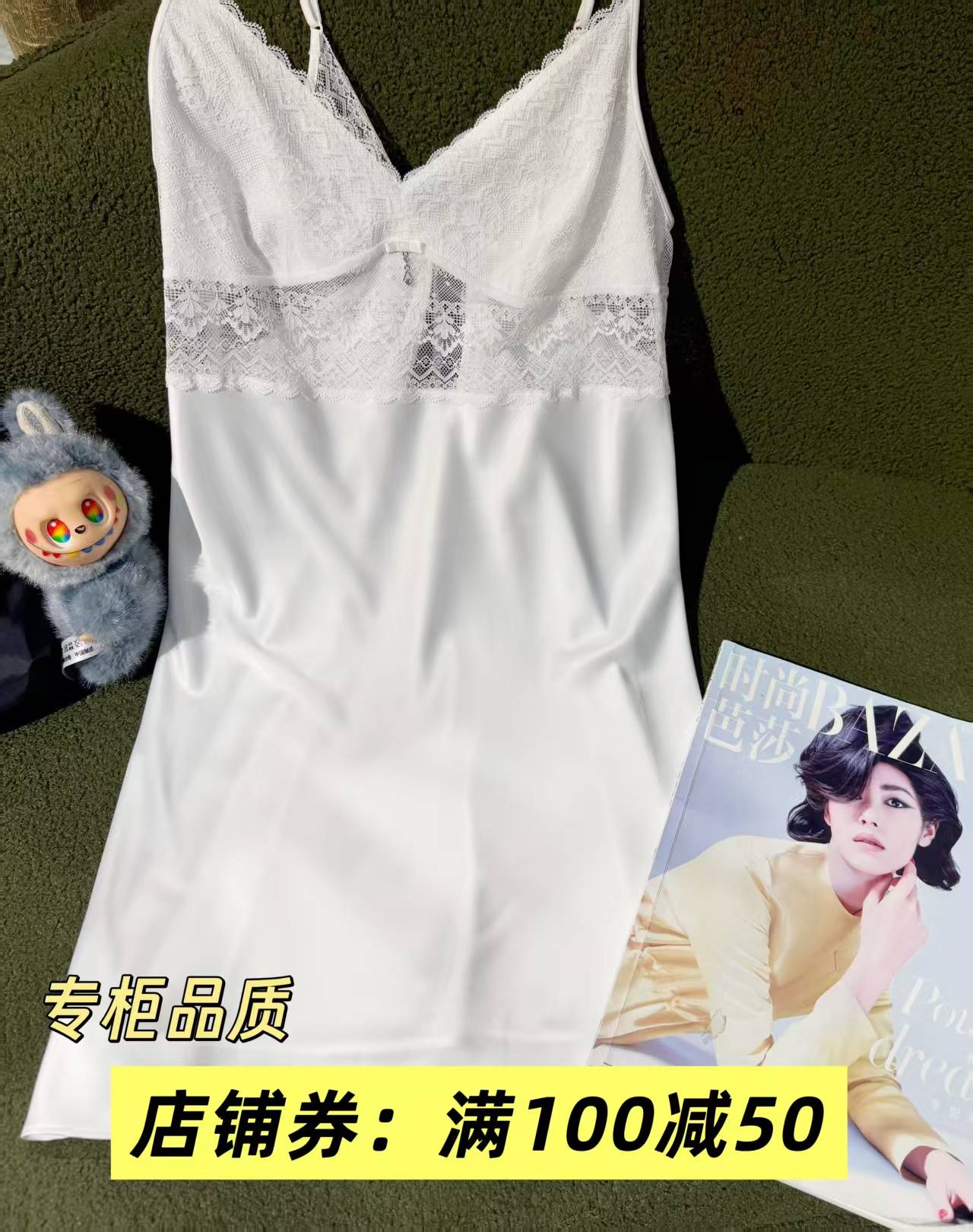 夏季冰丝性感睡裙法式镂空蕾丝花边纯欲风美背薄款吊带短裙睡衣女