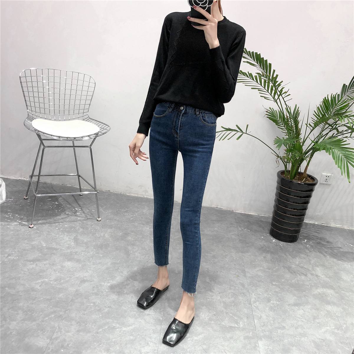 [九分]高弹水洗经典款舒适牛仔裤女小脚裤