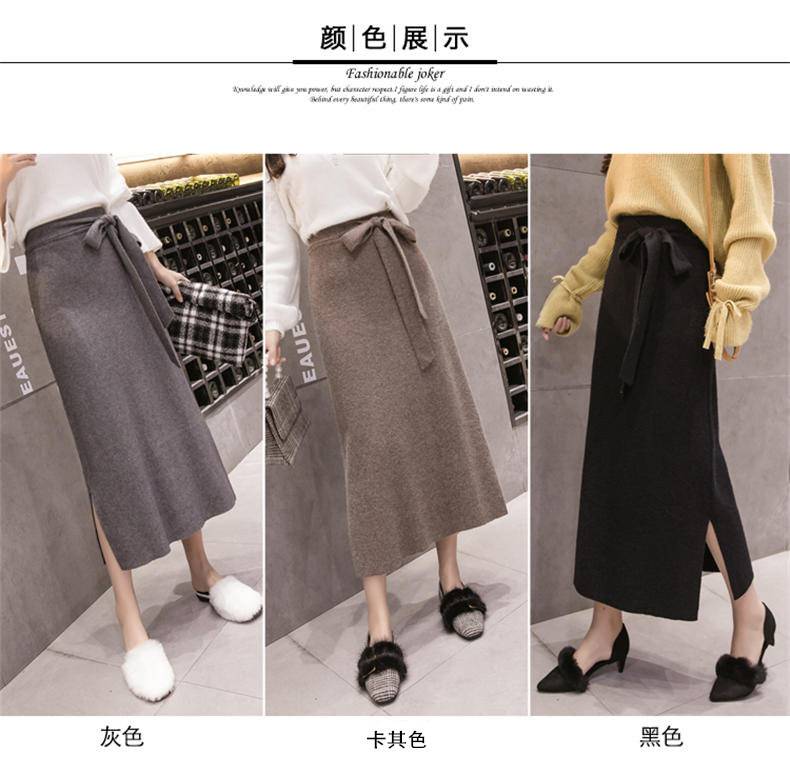 2018秋冬新款女装大码160斤胖MM针织长裙A字裙半身裙