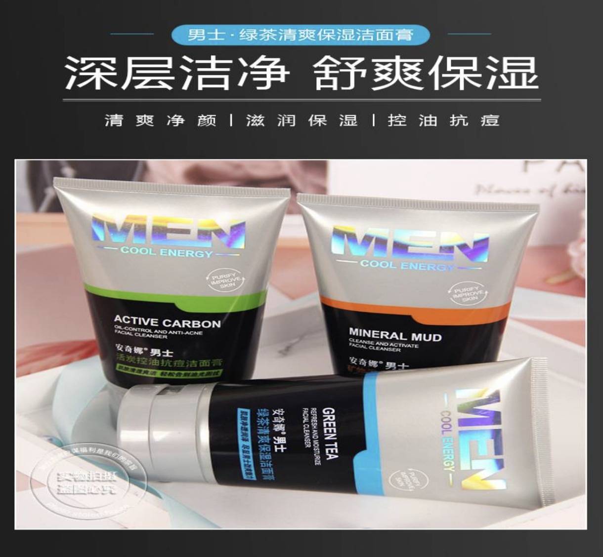 安奇娜男士矿物泥净源活力洁面膏男士洁面乳泡沫型洗面奶