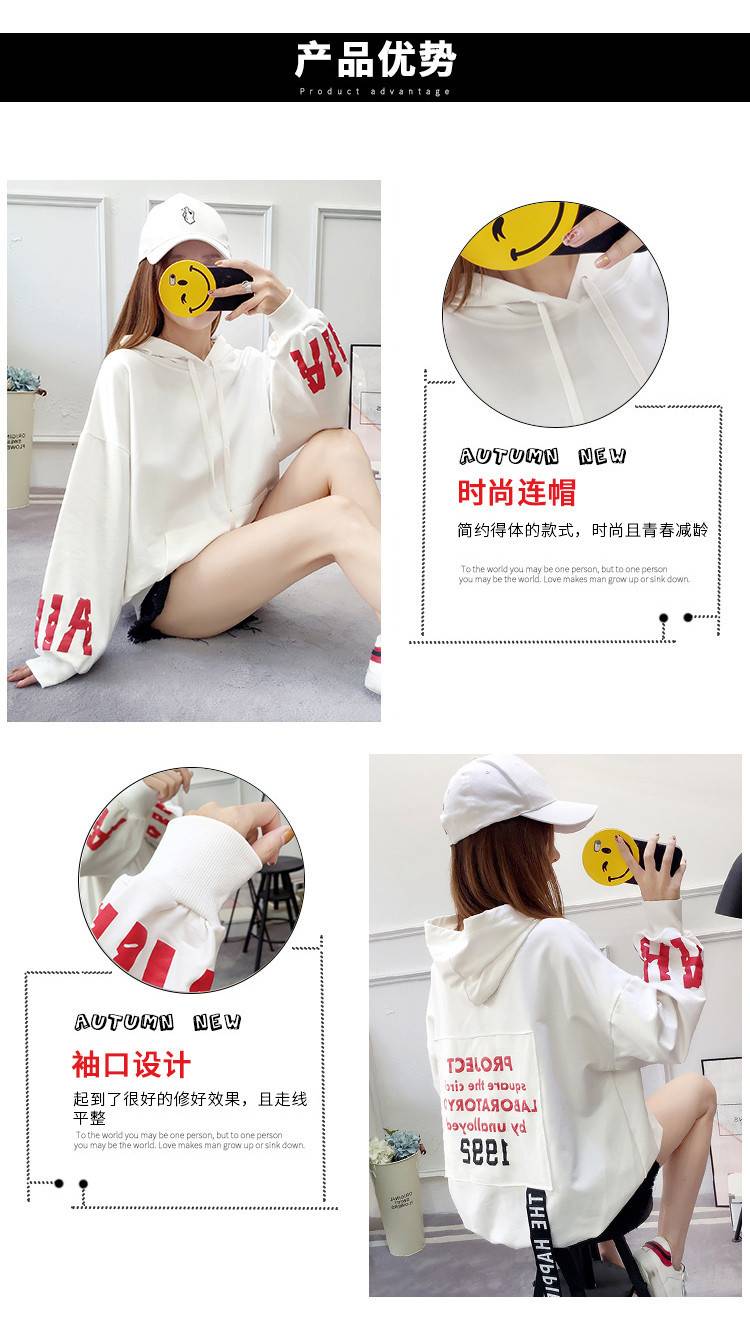 2018秋季女装新款卫衣 宽松套头字母东大门女装韩版连帽卫衣女