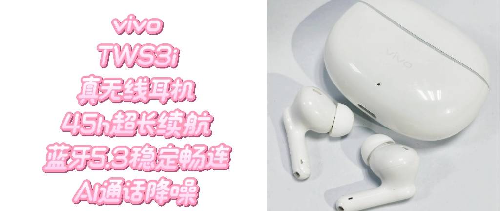 vivo TWS 3i 超长续航 蓝牙5.3稳定畅连 AI通话降噪 入耳式 真无线耳机