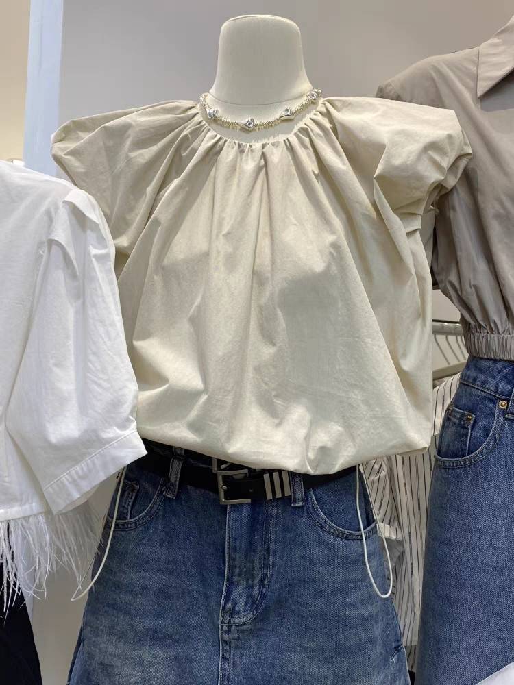 现货上新 短袖衬衫女夏季新款法式小众显瘦泡泡袖上衣高级感