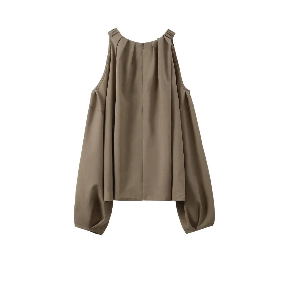 【现货】气质法式露肩衬衫女设计感削肩衬衣小众挖肩上衣