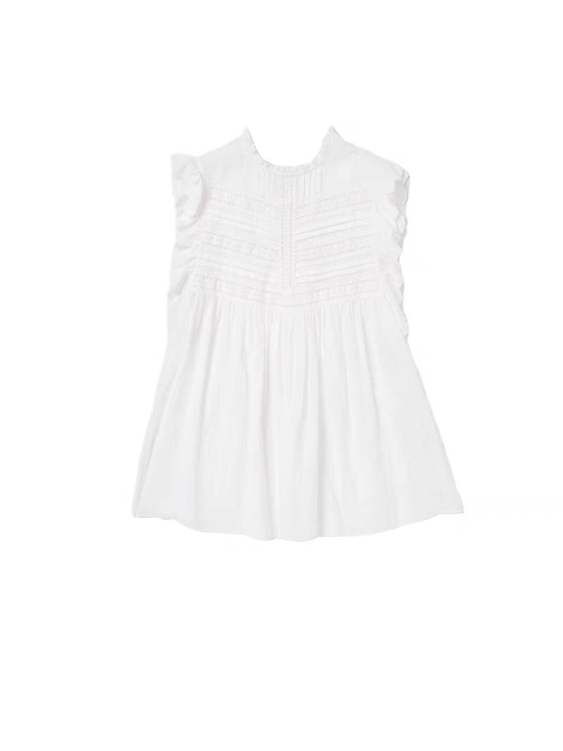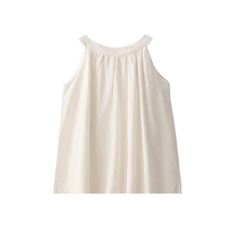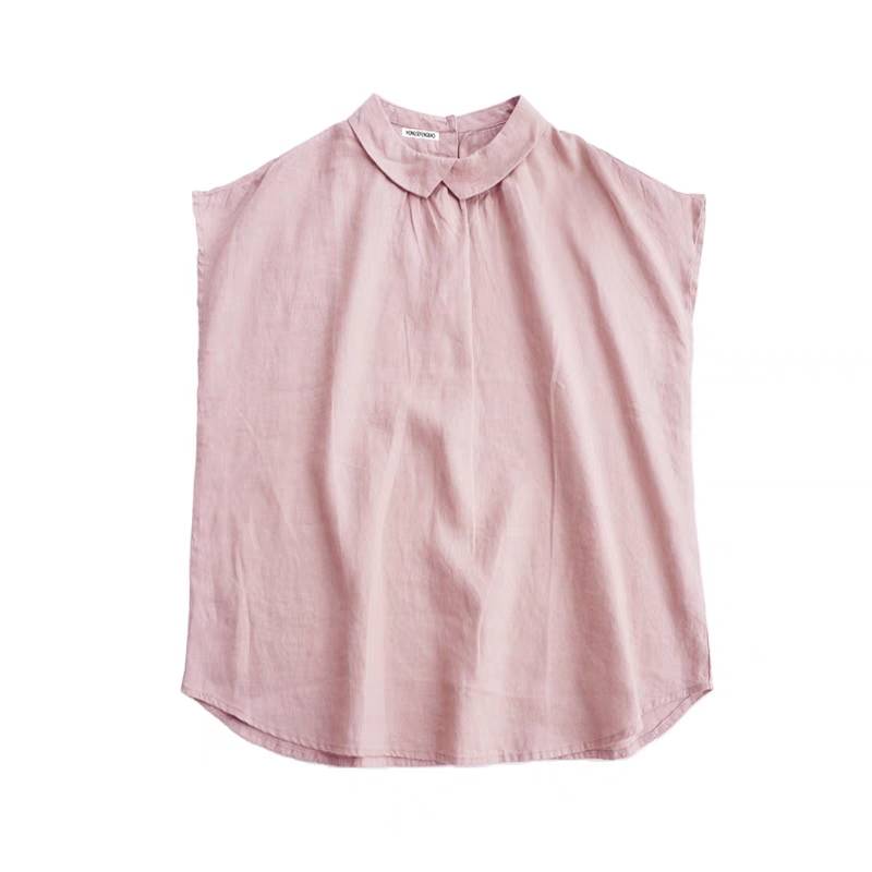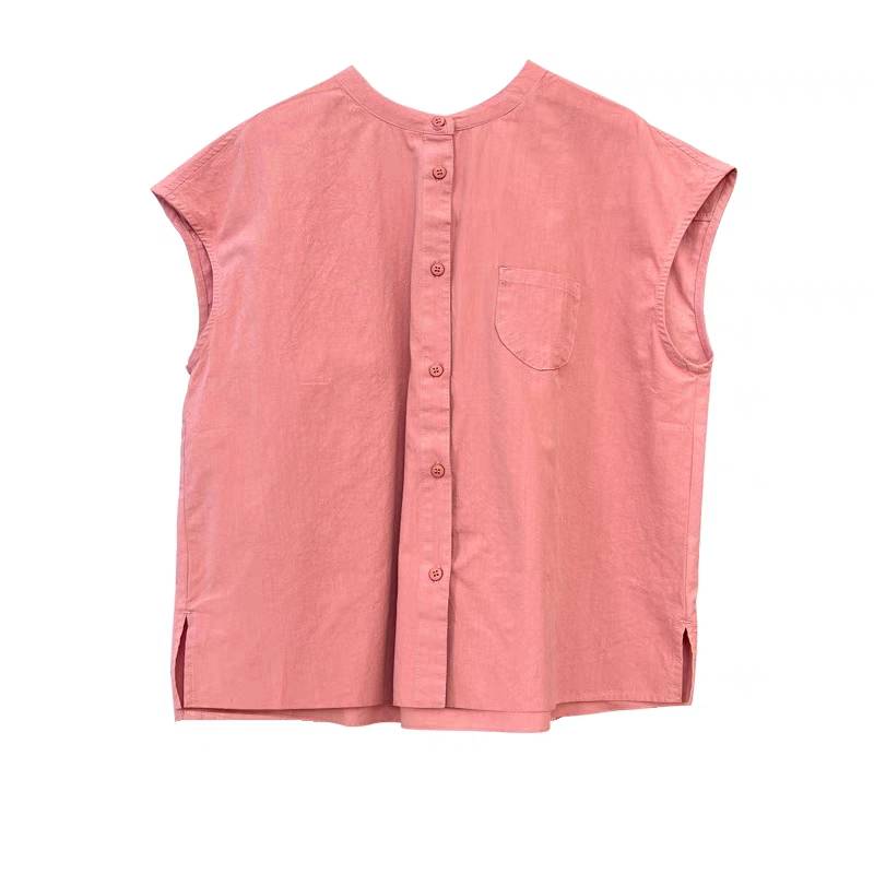 现货原创日系粉色纯棉衬衫女夏文艺简约圆领背心无袖衬衣上衣小衫