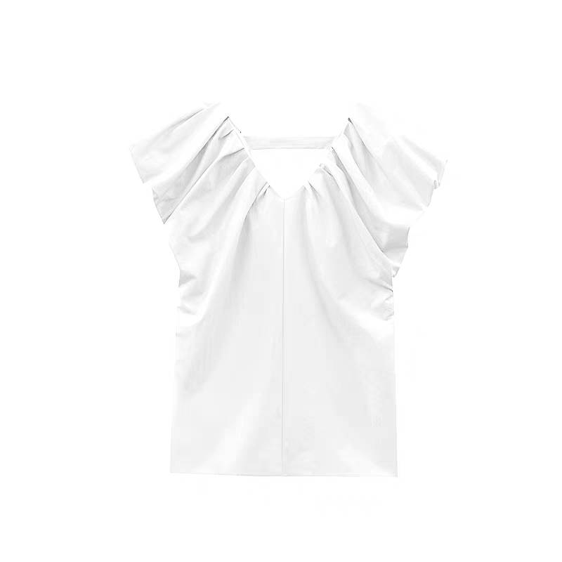 现货法式休闲白色衬衫女夏季新款设计感小众通勤显瘦套头上衣