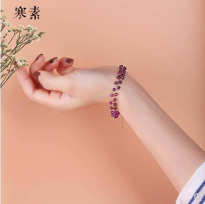 满天星手链女14k包金森系简约紫牙乌石榴石天然水晶