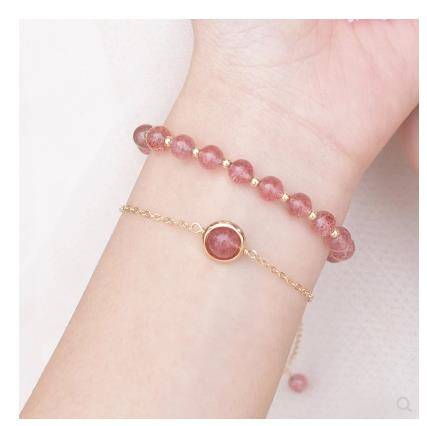 天然草莓晶手链女韩版简约个性粉水晶招桃花转运珠手串生日礼物