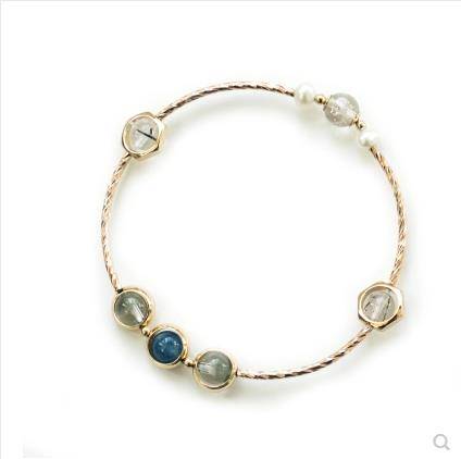 招财转运珠绿幽灵手链女黄粉草莓水晶发晶桃花运幸运手串纯银正品