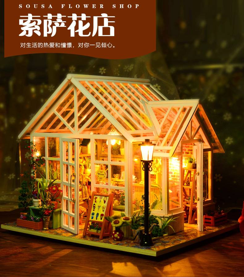 diy小屋别墅手工制作创意小房子艺术屋模型拼装玩具索萨花房成人