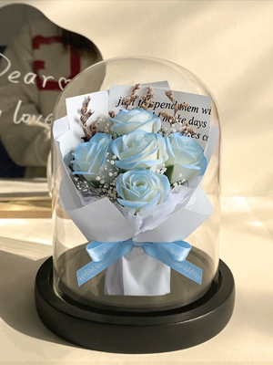 永生花花束玫瑰花碎冰蓝干花送女友闺蜜生日礼物玻璃罩摆件香皂花