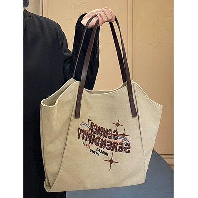 大容量帆布包包女2023新款高级感小众单肩包上课通勤包手提托特包