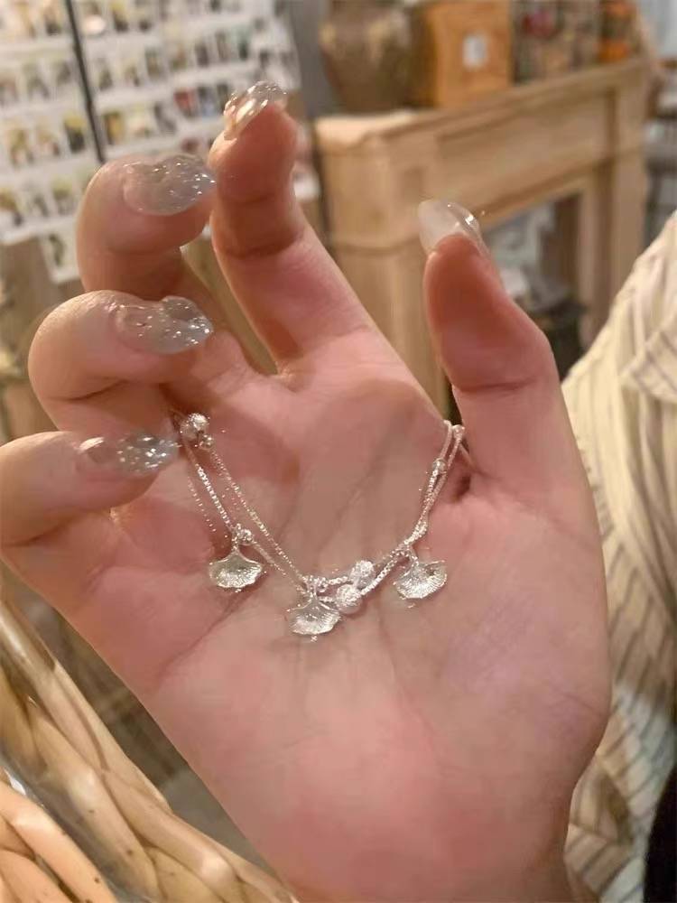999纯银双层叠戴银杏叶手链女款轻奢小众精致2023年新款生日礼物