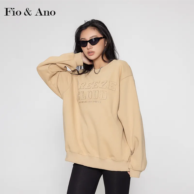 美拉德宽松长袖薄圆领美式无帽卫衣女外套小个子2023新款爆款秋冬