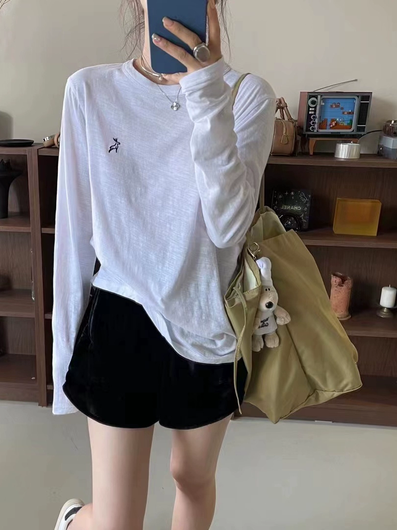 【珺珺定制】白色长袖打底衫女宽松BYJUNJUN早秋简约百搭T薄款T恤